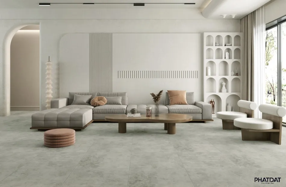 An toàn & Êm ái: Bề mặt có độ đàn hồi nhẹ, chống trơn trượt tốt, mang lại cảm giác ấm chân và giảm tiếng ồn hiệu quả khi di chuyển.