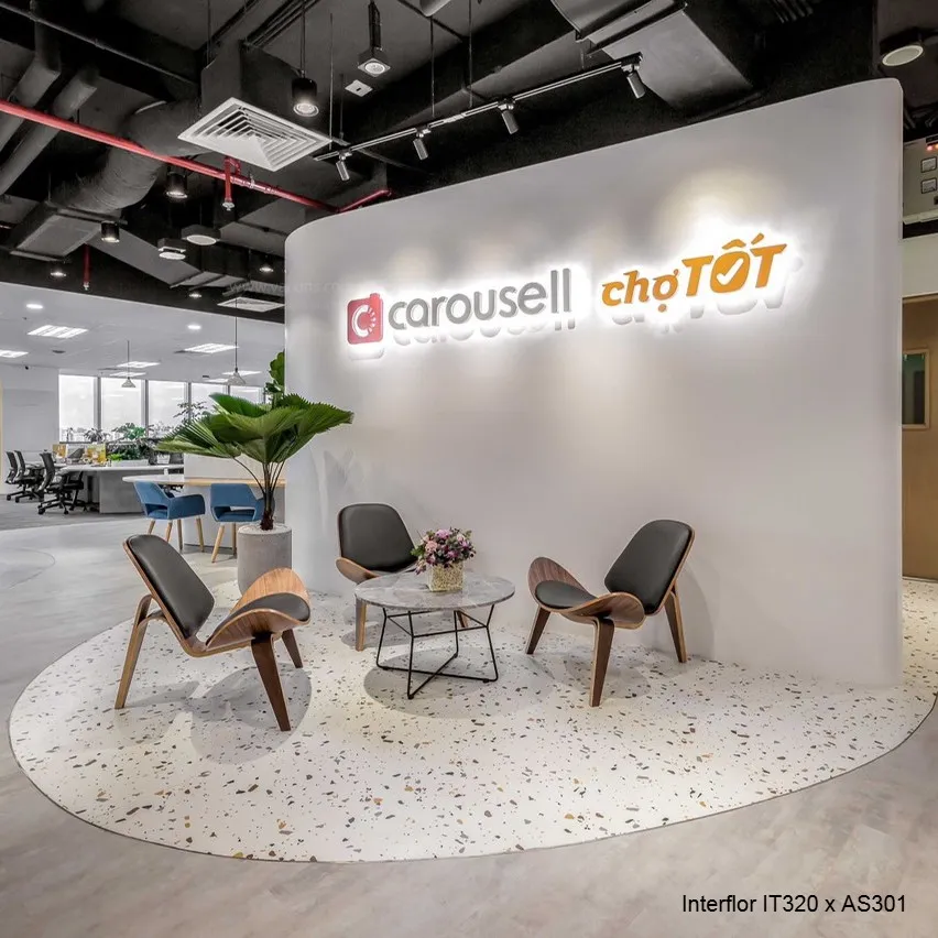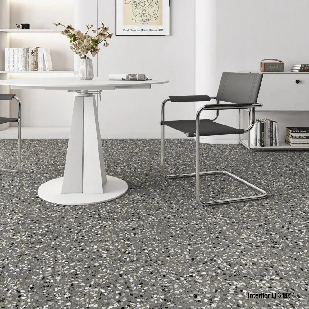 Sàn nhựa vinyl terrazzo dán keo phù hợp cho: phòng khách, phòng ngủ, hành lang, văn phòng, showroom, studio chụp ảnh, cửa hàng thời trang, quán café, spa, thẩm mỹ viện, trường học, khu thương mại.