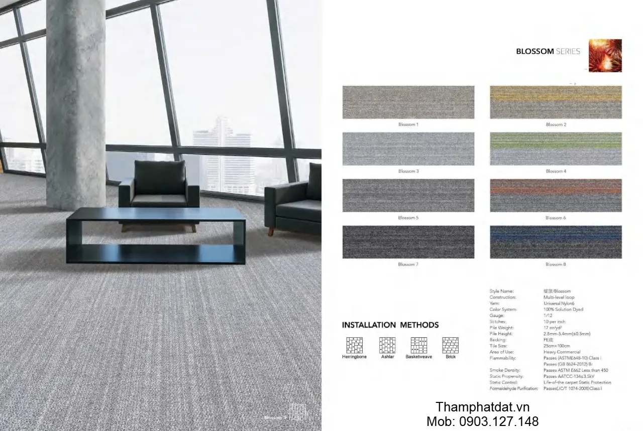- Liên hệ Thảm Phát Đạt để nhận file map thiết kế, tư vấn, xe mẫu và báo giá thảm Blossom carpet planks.
