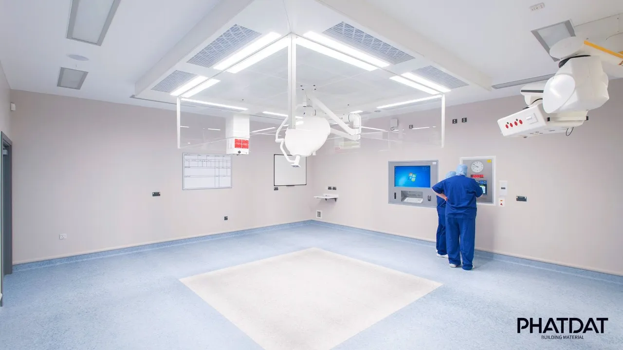 Các thiết bị trong phòng mổ như máy gây mê, máy theo dõi nhịp tim, và hệ thống robot phẫu thuật rất nhạy cảm với tĩnh điện. Sàn vinyl tĩnh điện giúp triệt tiêu các dòng điện tích phát sinh trong quá trình di chuyển của nhân viên y tế, bảo vệ an toàn cho cả bệnh nhân và thiết bị y tế đắt tiền.