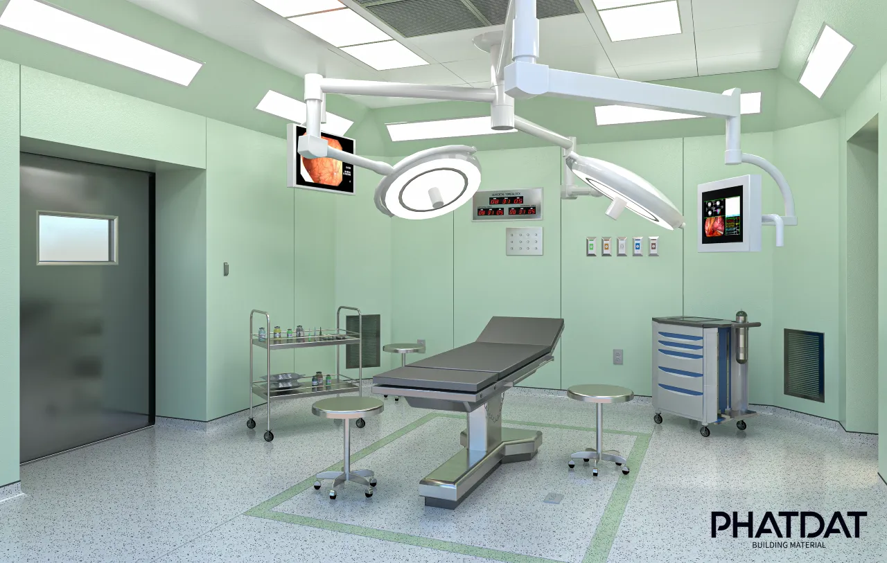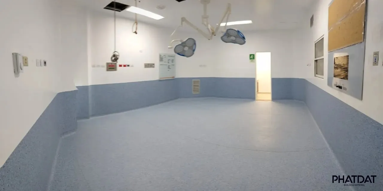 Sàn Vinyl Kháng Khuẩn Cho Phòng Mổ cần biết và bắt buộc trong mọi bệnh viện. Vì đây là yêu cầu phòng sạch, vô trung, tiệt trung trong lĩnh vực y tế. Phát Đạt Group chuyên tư vấn, cung cấp sàn vinyl kháng khuẩn cho phòng sạch. Trong thiết kế bệnh viện hiện đại, đặc biệt là khu vực phòng mổ, phòng hồi sức tích cực (ICU) và phòng sạch thí nghiệm, sàn nhà không chỉ là vật liệu trang trí mà là một phần của hệ thống kiểm soát nhiễm khuẩn. Sàn vinyl kháng khuẩn (hay còn gọi là sàn vinyl đồng nhất – Homogeneous) là loại vật liệu dạng cuộn được sản xuất từ nhựa PVC nguyên sinh cùng các chất phụ gia đặc biệt.