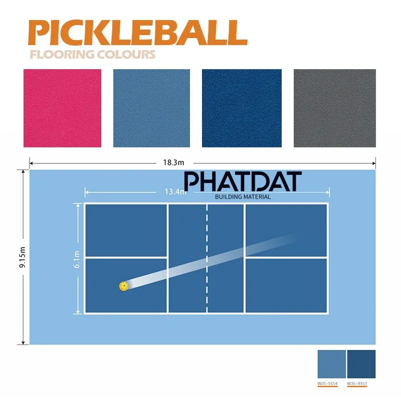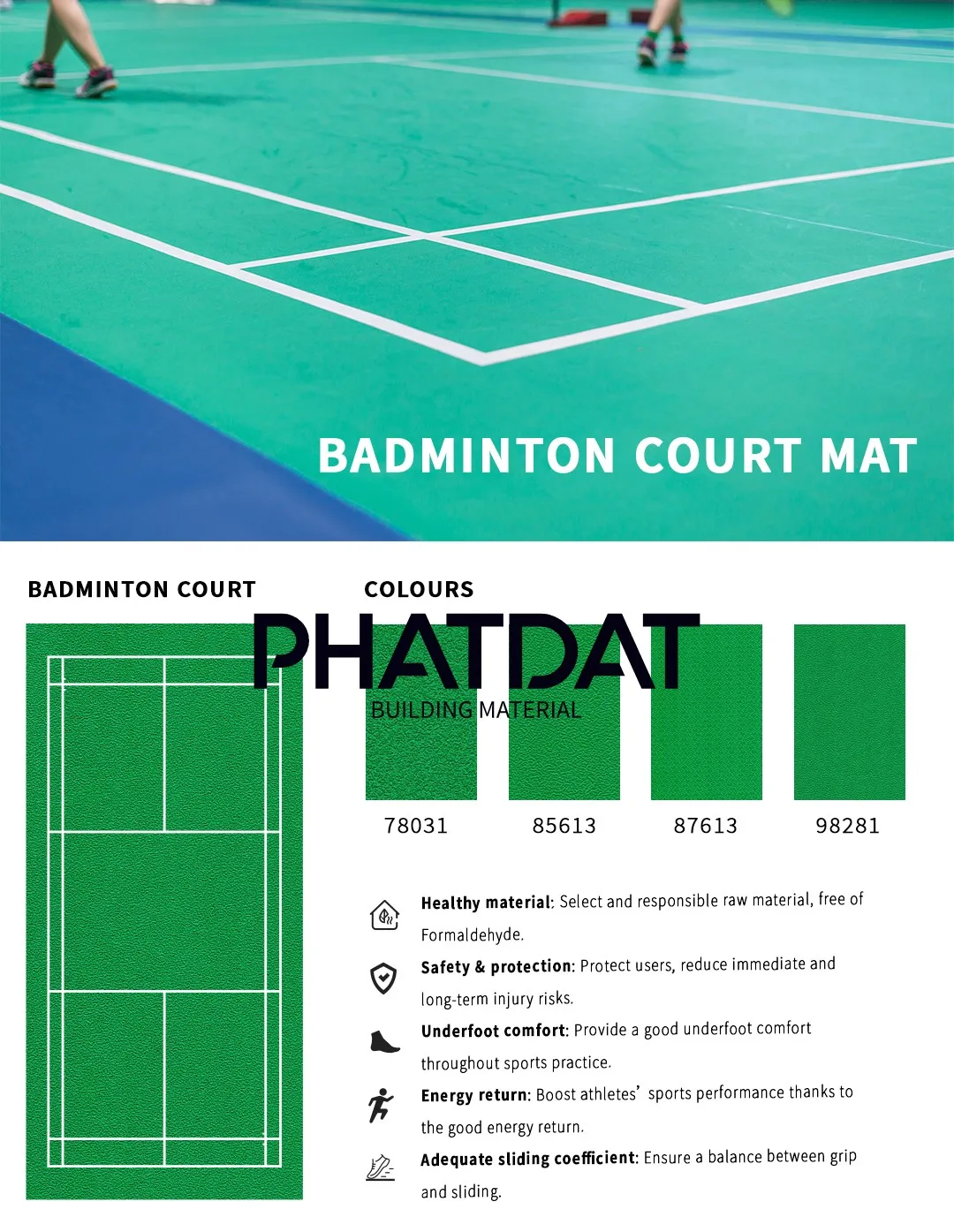 Sân Cầu Lông chuyên nghiệp: Thường sử dụng các mã màu xanh lá cây (Green) đặc trưng như BK-3501, BK-3505 với bề mặt vân cát hoặc vân vải để tăng độ bám.