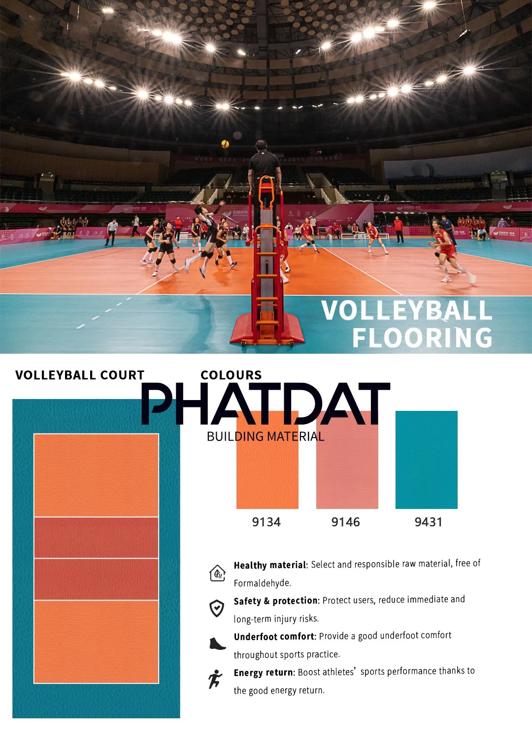 Bên cạnh đó, Phát Đạt Group là đơn vị chuyên tư vấn, cung cấp, thi công sàn thảm vinyl thể thao. Sàn thảm vinyl lót sân đa năng, nhà thi đấu, bóng bàn, bóng rổ, pickleball, bóng chuyền, cầu lông, tennish, futsan… Cũng là nhà phân phối sàn thể thao các hãng lớn như: Gerflor, Tarkett, Armstrong, Unitec Floor, Interflor, Newflor, Allfloor, Xfloor...